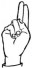 На ћирилици написано ТЕОДОР МИСКИН састоји се из 12 слова [?]. Исписано ћириличном једноручном азбуком за глувонеме: